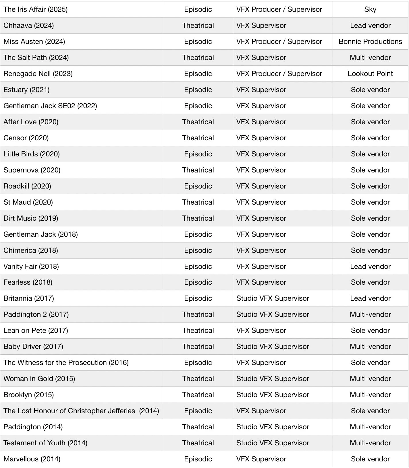 In early 2022, I decided to jump production side and pursue a freelance career as a VFX Producer and Supervisor which I’m really enjoying. More recently I’ve introduced my own bespoke artist teams to reduce costs on my projects which works well.